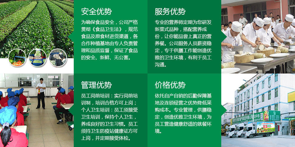 是一家集農(nóng)副產(chǎn)品配送、餐飲管理服務(wù)為主的有限公司。公司秉承“誠(chéng)信經(jīng)營(yíng)、顧客至上”的經(jīng)營(yíng)理念,嚴(yán)格按照 ISO9001:2000 國(guó)際標(biāo)準(zhǔn)質(zhì)量體系進(jìn)行管理。公司經(jīng)過(guò)不斷的努力,特別在企事業(yè)單位、工廠及學(xué)校等幾個(gè)領(lǐng)域方面積累了豐富的服務(wù)管理經(jīng)驗(yàn)。公司主要從事餐料配送、農(nóng)副產(chǎn)品配送、學(xué)校食材配送、新鮮有機(jī)蔬菜配送、政府食堂蔬菜配送、新鮮蔬菜糧油配送及學(xué)校食堂承包業(yè)務(wù)。服務(wù)范圍有深圳寶安、福田、南山、龍崗、廣州、惠州、東莞等地。