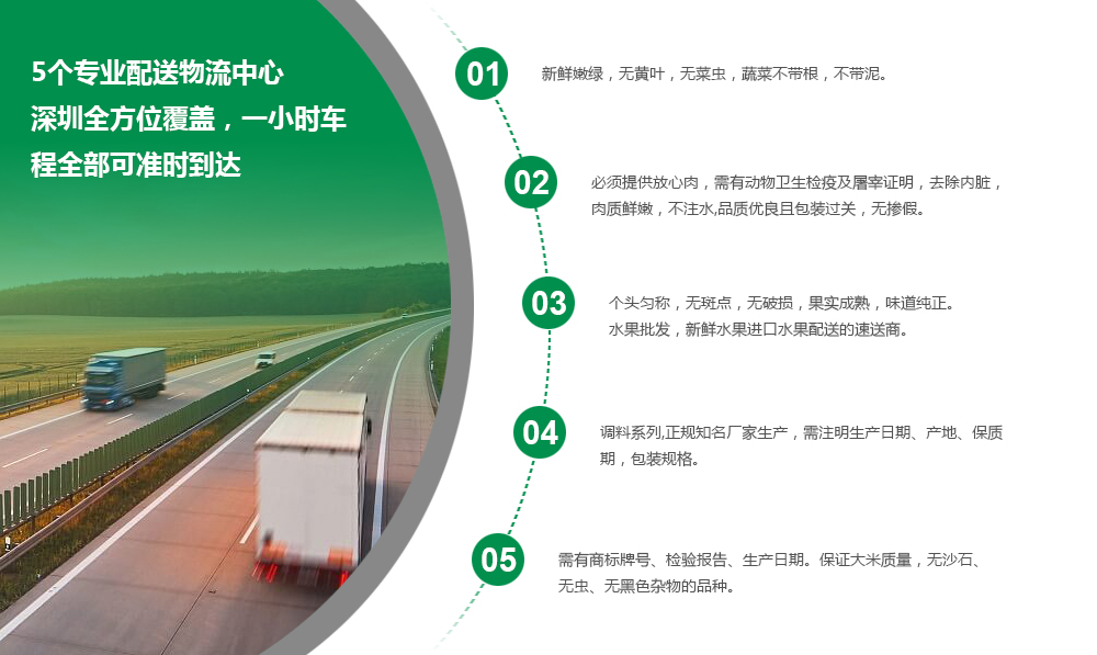 農(nóng)產(chǎn)品配送服務(wù)主要是指根據(jù)客戶的要求對(duì)蔬菜、水果等新鮮食材進(jìn)行分揀、加工、搭配,在農(nóng)產(chǎn)品流通中發(fā)揮著重要作用。今天介紹配料配送的要求……